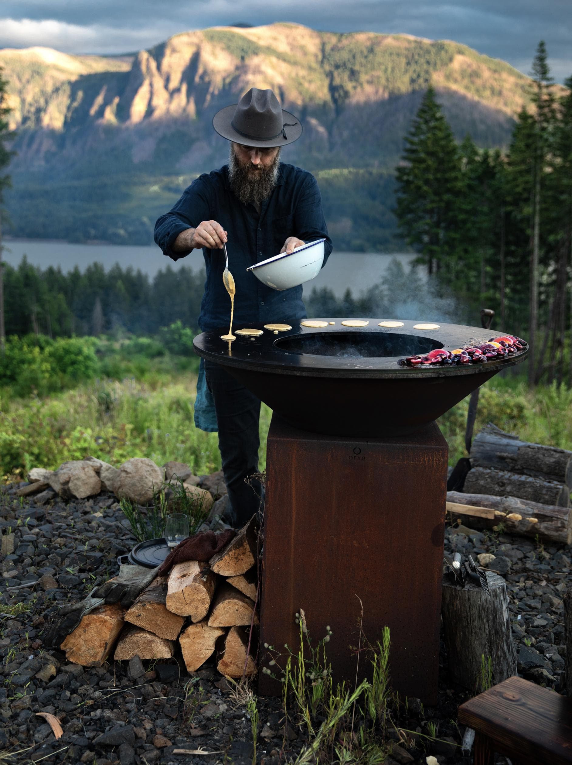 The Classic is the most iconic model of the OFYR collection. The OFYR Classic 100 is a beautiful object that has been designed to fit into any outdoor space, all year long. Once the fire is lit, the cooking unit turns every outdoor event into a special moment.