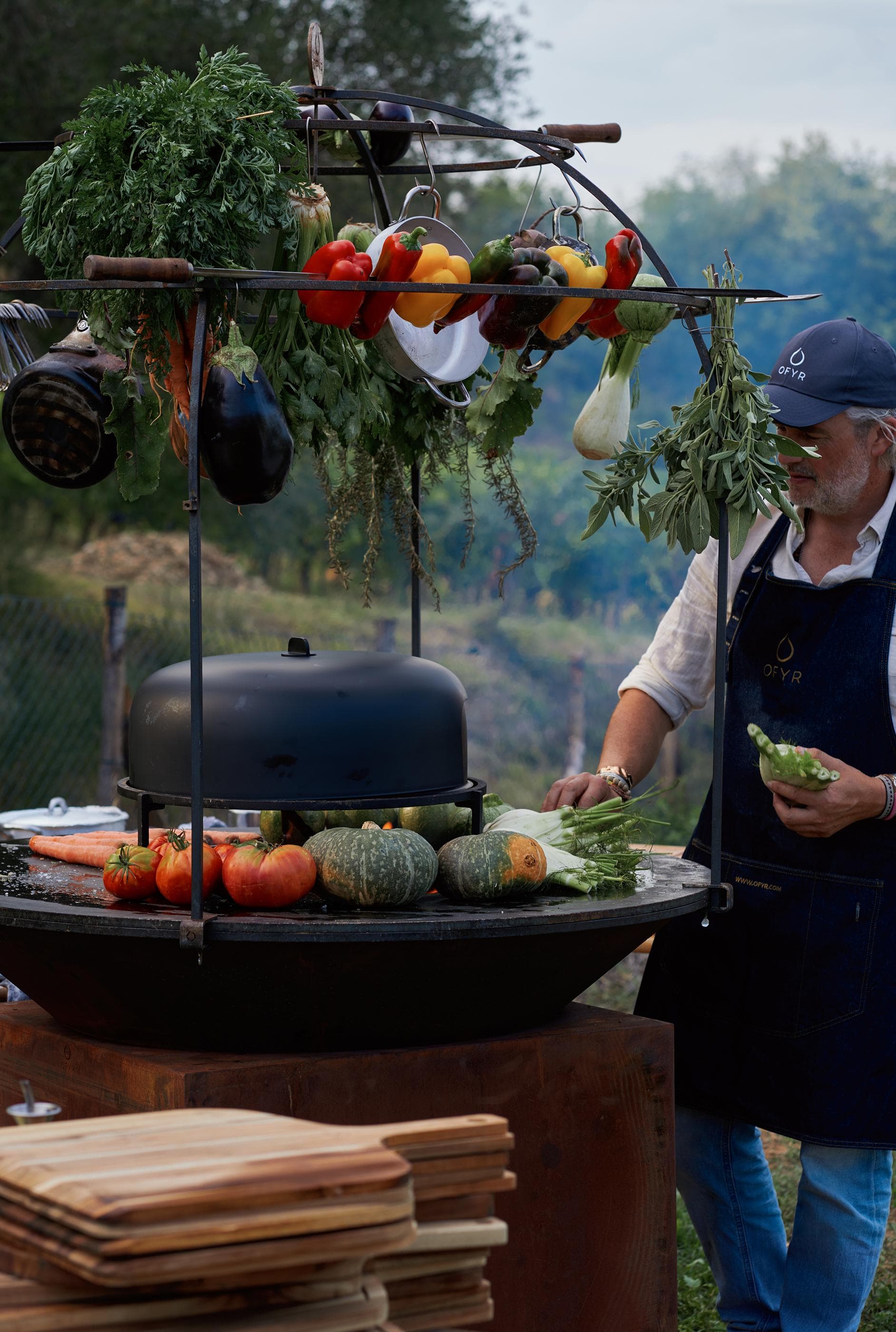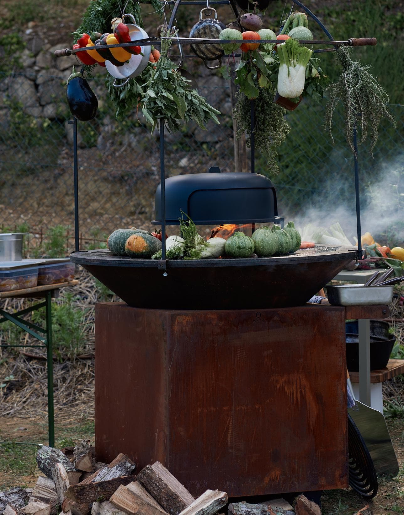 The cone has a burn capacity of about 4-5 hours before the ashes need to be removed. Thanks to the wheels and handle the cooking unit is easy to manoeuvre around the outdoor space. Combine with the OFYR Cage to create a perfect outdoor cooking unit for events and professional use.