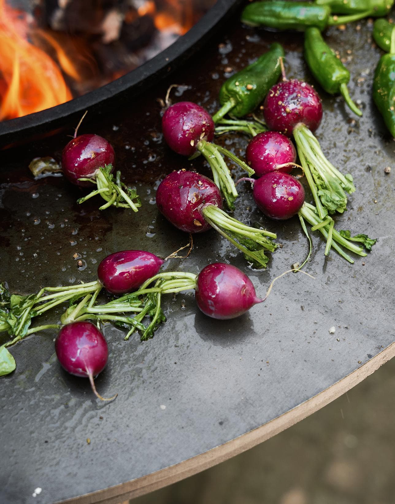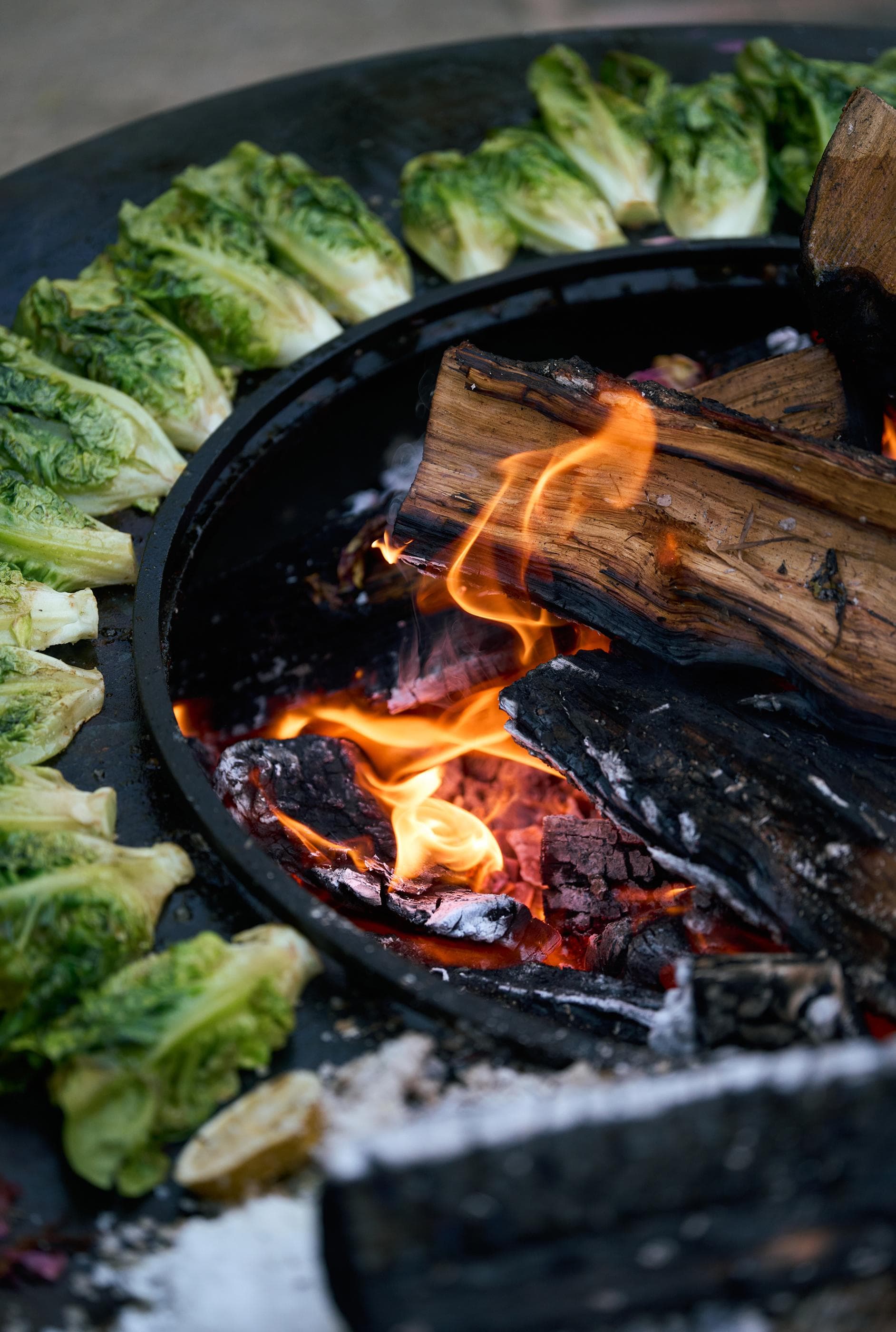 The narrow opening between the cooking plate and the ring is ideal for sweeping food remnants into the fire.