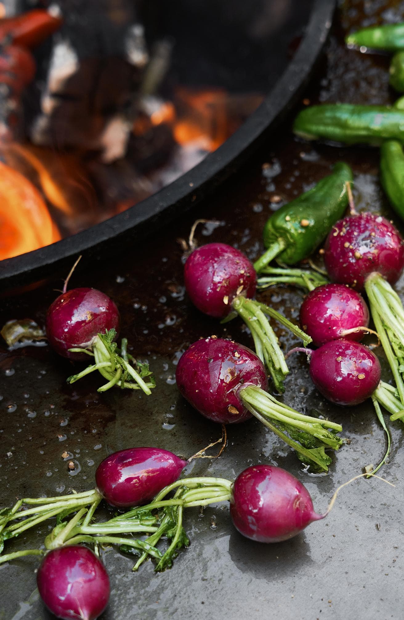 The narrow opening between the cooking plate and the ring is ideal for sweeping food remnants into the fire.