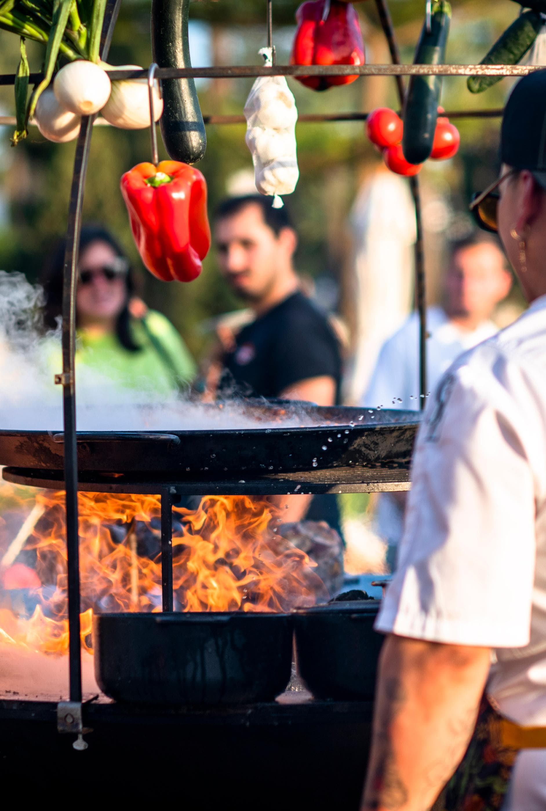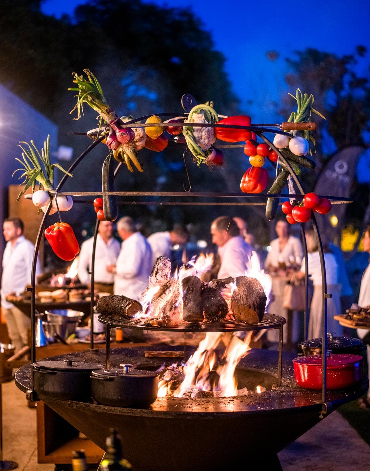 Place pans, like a paella pan, on the grill.