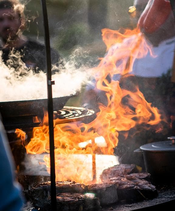 The sturdy two-piece OFYR Grill Round is ideal for cooking large ingredients on the cooking unit. Place the grill and stand directly over the flames for that typical smoky flavour. The cooking plate remains free while you are using the grill, allowing you to prepare multiple dishes at once. Thanks to the practical height of the stand, it is still possible to add wood to the fire underneath the grill.
