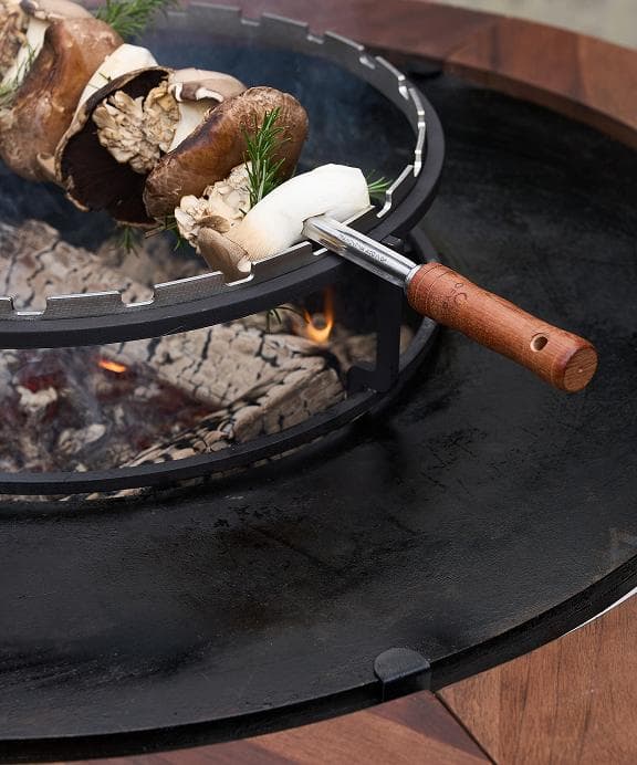 For barbecue fans who love cooking directly over fire to create that typical smoky flavour. Since the set is placed directly above the fire, ingredients will be cooked quickly. The skewers are held in place thanks to the notches in the ring. This also allows you to carefully turn the skewers. For large pieces of meat and vegetables, it's recommended to create a stable construction by using 2 skewers.
