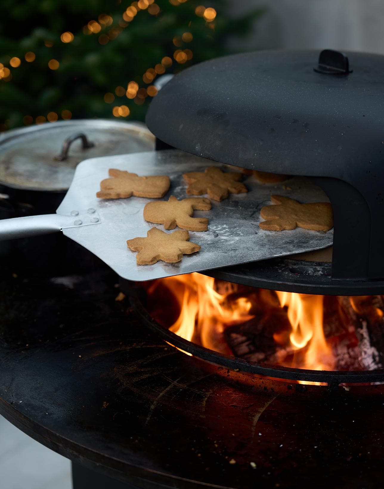 Complete your outdoor kitchen with the OFYR Pizza Oven. The oven includes a practical pizza scoop, a double-sided cast-iron plate, a pizza stone and a double-walled cloche with 2 walls that rotate around each other. The cast-iron plate has practical ventilation holes that allow the heat from the fire to circulate in the cloche, heating up the pizza much faster.