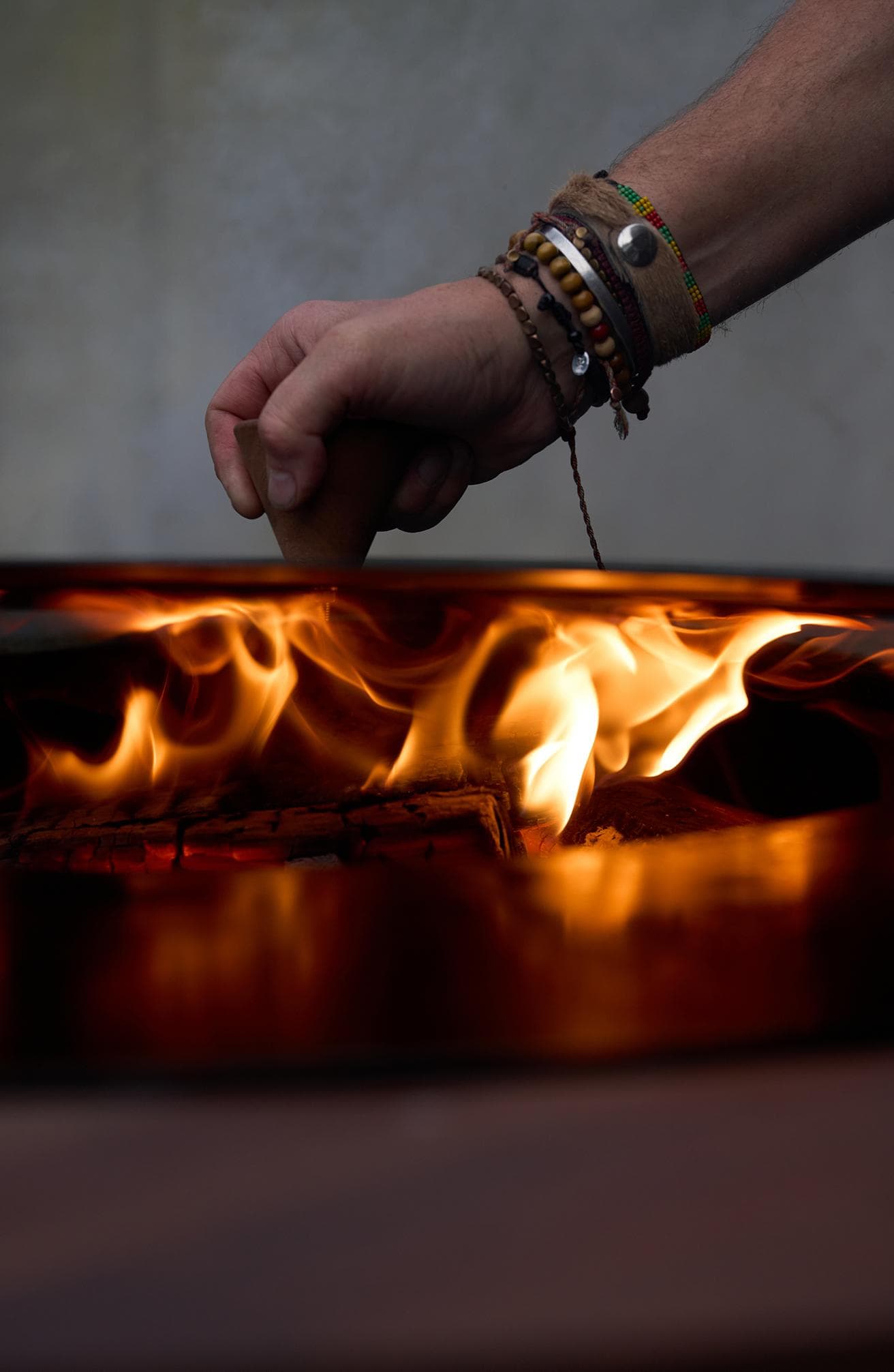The OFYR Snuffer is specially designed to safely extinguish coal residue in your cooking unit. The lid is made of black coated steel and fitted with a teak knob. In addition, 6 protrusions have been added to prevent the lid from slipping while it's covering the fire. The Snuffer is available for the 85, 100 and XL units.