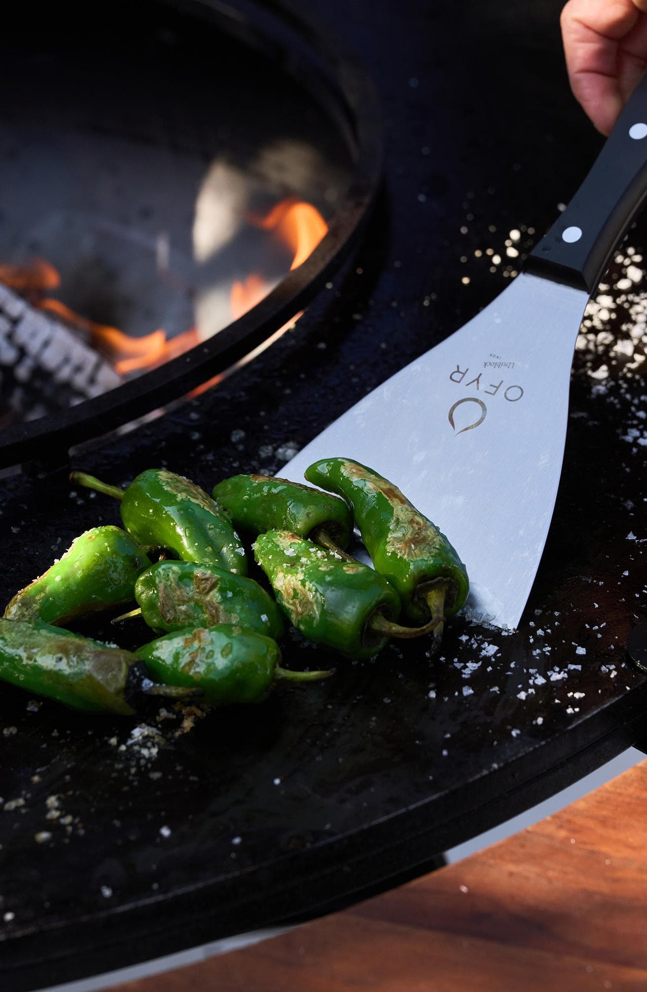 he OFYR Spatula PRO is an indispensable accessory for OFYR owners. The spatula is available with a thermoplastic handle for optimal grip and has a stainless-steel blade. This makes it a perfect tool for turning ingredients on the cooking plate. The spatula also makes it easy to clean and scrape food residue off the plate.